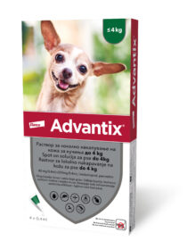 Advantix®, rastvor za lokalno nakapavanje na kožu za pse do 4 kg – zapremina 0.4 mL / Imidakloprid (mg/kg tm) najmanje 10 / Permetrin (mg/kg tm) najmanje 50