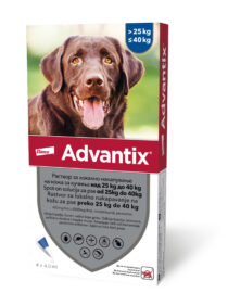 Advantix®, rastvor za lokalno nakapavanje na kožu za pse preko 25 kg – zapremina 4.0 mL / Imidakloprid (mg/kg tm) 10-16 / Permetrin (mg/kg tm) 50-80