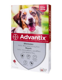 Advantix®, rastvor za lokalno nakapavanje na kožu za pse preko 10 kg do 25 kg – zapremina 2.5 mL / Imidakloprid (mg/kg tm) 10-25 / Permetrin (mg/kg tm) 50-125