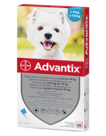 Advantix®, rastvor za lokalno nakapavanje na kožu za pse preko 4 kg do 10 kg – zapremina 1.0 mL / Imidakloprid (mg/kg tm) 10-25 / Permetrin (mg/kg tm) 50-125