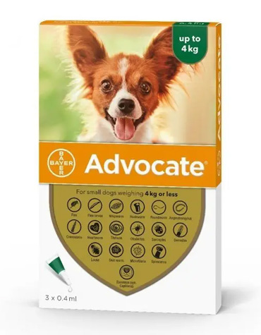 Advocate® za male pse (≤ 4 kg): 0,4 mL – 40 mg – 10 mg
