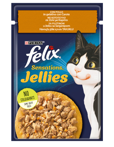 Sastav: Meso i prerađevine životinjskog porekla/porijekla* ((14%, ood čega piletina 8%)), Ekstrakti biljnih proteina, Riba i riblje prerađevine, Povrće (0.7% dehidrisane šargarepe što je jednako 8.5% šargarepe u želeu), Minerali, Različiti šećeri.