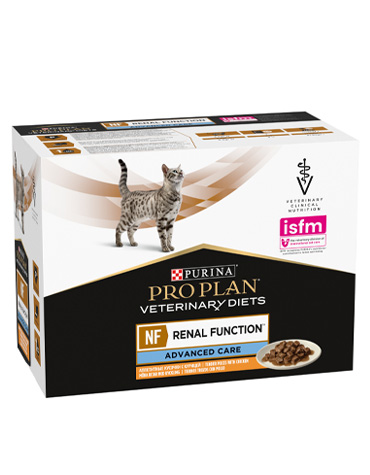 Potpuna vlažna hrana za mačke za podršku funkciji bubrega u slučaju uznapredovalih faza hronične bubrežne insuficijencije kod odraslih mačaka. Formulisana sa ograničenim ali visokokvalitetnim proteinima i ograničenim sadržajem fosfora sa povišenim sadržajem omega 3 masnih kiselina/kisjelina. Ova hrana ima odličan ukus kako bi zadovoljila pacijente sa bubrežnim oboljenjima i smanjenjim apetitiom.
